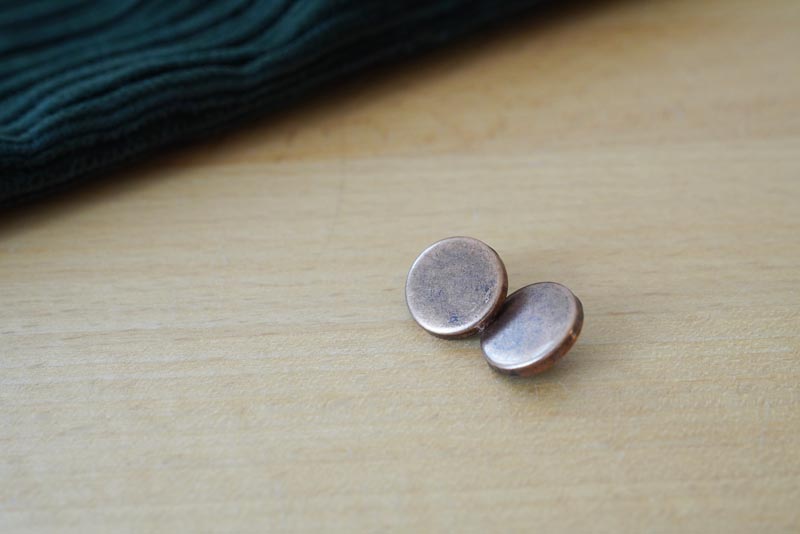 Jako úplně poslední nás čeká našití knoflíků a vypracování knoflíkové dírky. V pravém předním dílu pásku odšijeme vhodnou velikost knoflíkové dírky vodorovně. Následně na levý přední díl pásku našijeme knoflík.