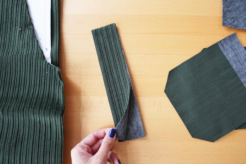 Pokud si nyní nevíte rady, nevadí. Pásek nejprve našijte dle postupu dále a začistěte jeho volnou stranu dodatečně.