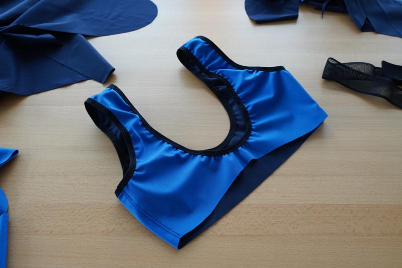 Návod na šití dámského sportovního podprsenkového topu je rozdělený do dvou částí. Žluté fotky jsou pro jednoduchou jednovrstvou variantu. Modré fotky jsou pro sportovní verzi s větší oporou - dvojitým předním dílem a širokou gumou pod prsy.