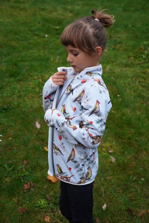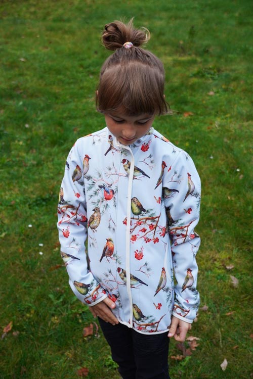 Slabší až středně silné tkaniny - nepružné látky. Iideálně jarní softshell, micropeach, šusťákovina. Použít se dá například i manžestr a plášťové látky. Můžete použít i zimní softshell, ale počítejte s tím, že bude bundička více "natělo". Terulce jsem šila podle střihu SLIM (tedy pro hubené děti) ve velikosti 128 a ještě k tomu jsem použila zimní softshell. Terulka má prakticky ukázkové míry pro slim 128 (výška: 127 cm, hruď: 57, pas: 53, boky: 63). Podívejte se sami, jak na ní bunda vypadá: