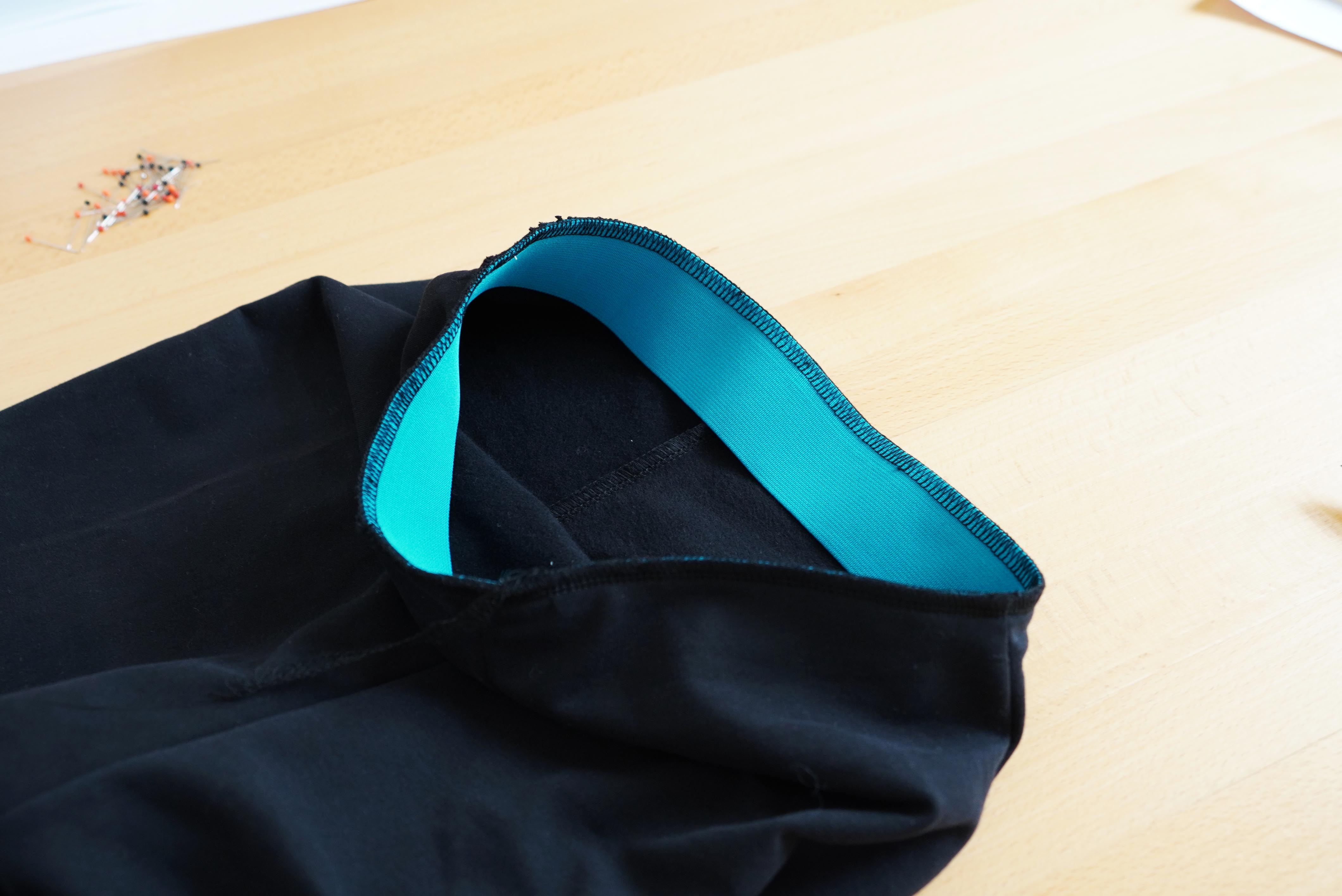 Elastické zvonáče můžete šít na overlocku ale i na běžném šicím stroji. Pokud budete šít na domácím šicím stroji, doporučuji šít pružným stehem (úzkým cikcakem, tříkrokým rovnostehem apod.), aby se vám netrhaly švy. Také doporučuji snížit přítlak patky a lehce povolit napětí spodní nitě, pokud to váš šicí stroj při šití umožňuje.