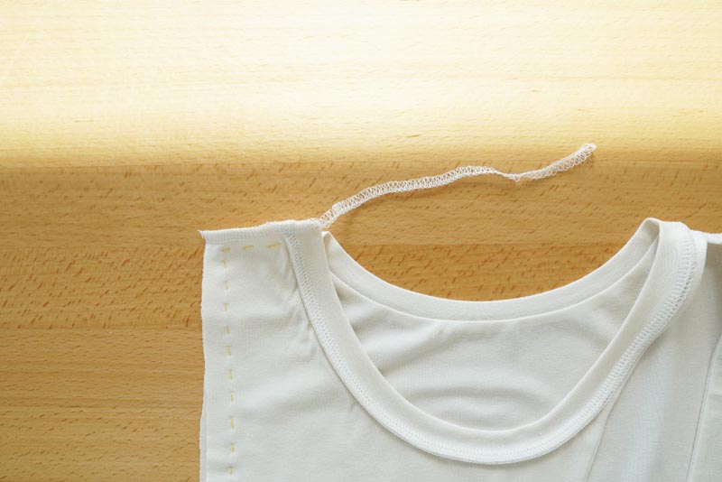 Tílko můžete ušít na běžném šicím stroji nebo na overlocku. Švy by však v obou případech měly být pružné, aby během oblékání nebo nošení nepopraskaly. Při šití na běžném domácím šicím stroji se řiďte následujícími doporučeními: