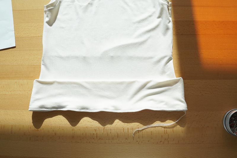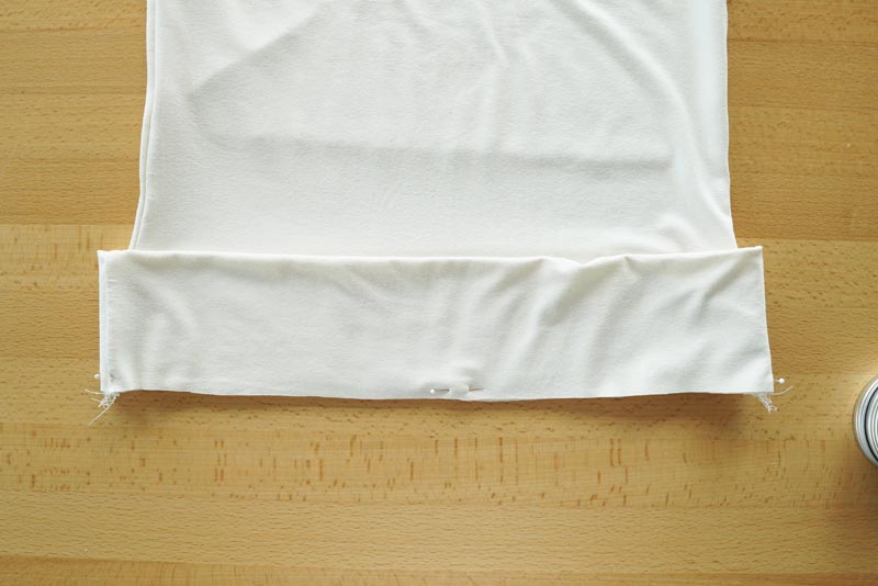 Spodní lem podélně přeložíme na polovinu, lícem ven.