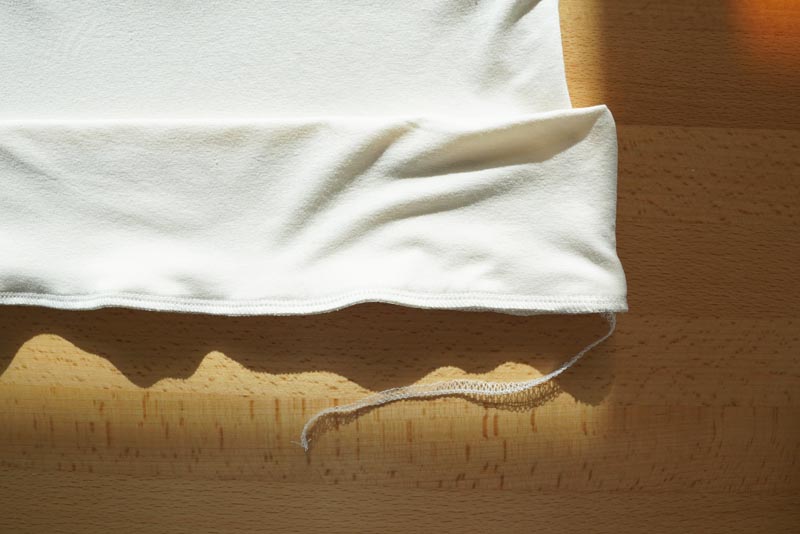 Ještě než se pustíme do dalšího šití, začistíme volný střižní okraj podsádky.
