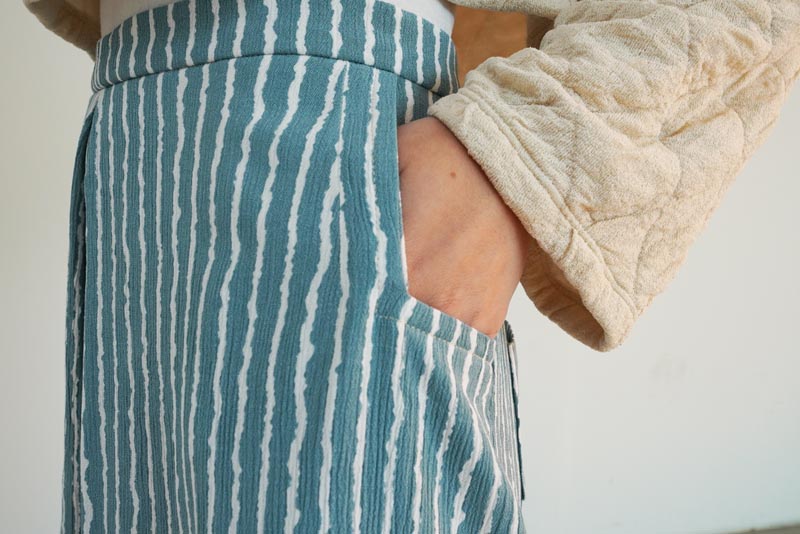 Na kalhotovou sukni doporučuji použít kalhotové materiály, tkaniny s keprovou nebo plátnovou vazbou, oblekové látky apod.