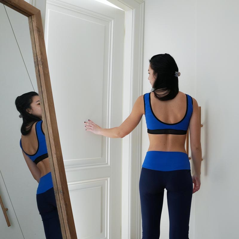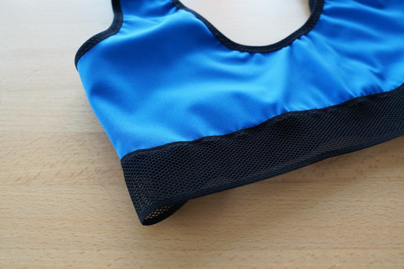 Zadní díl je bez zapínání (podprsenka se přetahuje přes hlavu). Sportovní podprsenkový top je vhodný na doma, na nenáročný sport (jóga, pilates apod.) nebo třeba na spaní. Pod prsy je možné pro větší oporu použít širokou gumu.