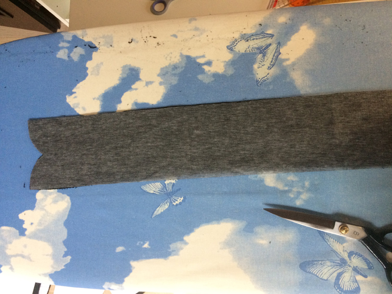 Podkryt zipu stříháme na přehybu látky. Pečlivě si jej rozžehlíme, pokud se okraje stáčí, můžeme podkryt napařit, okraje našpendlit na žehlícím prkně a nechat pár minut doschnout a vychladnout, tím se kraje trochu ustálí a nebudou se kroutit.